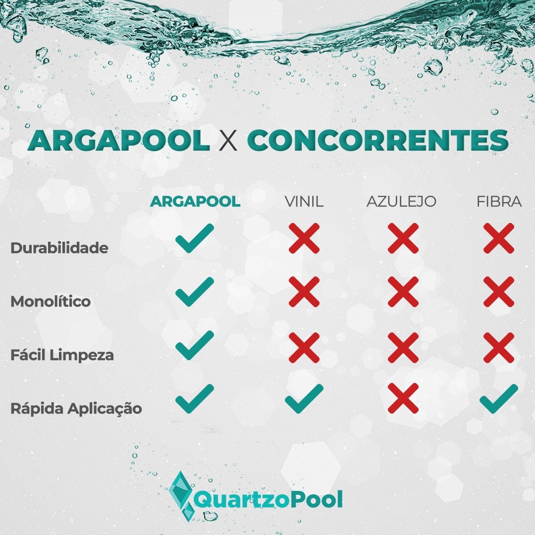 O Argapool é um revestimento monolítico de aplicação rápida, sem emendas, oferecendo alta durabilidade, resistência e praticidade. Ele é anti-térmico, antiderrapante e impermeável. Essa tecnologia amplamente usada em piscinas americanas agora está disponível na Revesti Piscinas.