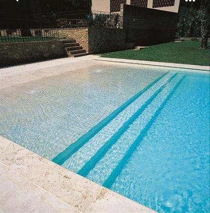 Com o desgaste natural do cimento branco e a presença de areia e calcário em nossa composição, as pedras de Quartzo tornam-se cada vez mais visíveis, resultando em uma piscina que ganha brilho ao longo do tempo.